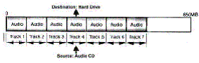Audio CD uses the Disk-at-Once writing method. The audio tracks or/and audio files are written onto a complete disk in a singlesession without pausing. Audio data cannot be added later, even if there is remaining space left. The source input can be one or a number of audio tracks from one or several music CDs. It can also be one or a number of audio files from the hard drive such as WAV, MP3 and WMA files, or a combination of audio tracks and audio files. If the input audio tracks are from several source CDs, then you will be prompted each time to insert the CD, in which the audio track to be recorded resides.
