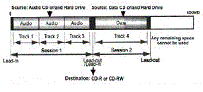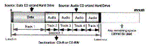 Three ways of writing data or audio tracks to the CD-R or CD-RW disks are used in the Easy CD Creator program: Disk-at-Once, Track-at-Once and Session-at-Once. The method you should use would depend on the type of CD you are going to create. For Audio CD (or audio part of a CD Extra or Mixed Mode CD), a track is referred to as a music track or a song in the music CD; while for Data CD (or data part of CD Extra or Mixed Mode CD), a track is referred to as a stack of data that may contain one or a number of data files or folders. A session is referred to as a single continuous pass of writing without pausing. A session consists of a lead-in, data or audio tracks and a lead-out. The lead-in and lead-out areas signify the beginning and end points of a session. They are not part of the data, but contain information about the session itself.Disk-at-Once: This method is used when writing a complete disk in a single operation without pausing (also in one session) followed by the closing of CD. This means that file or audio data cannot be added later, even if the full capacity of the blank disk has not been used. This writing method is used in creating Audio CD, Data CD or Mixed Mode CD.