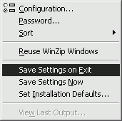 - Save Settings on Exit. Tells WinZip to automatically save any unsaved configuration changes before closing.